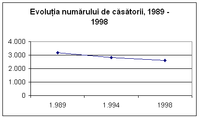 În ceea ce priveste numarul de casatorii pe medii urban/rural se remarca un echilibru care s-a mentinut constant din anul 1989 pâna în 1998.
