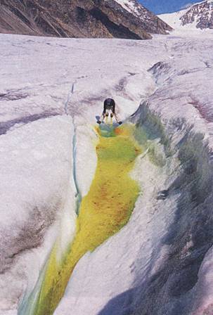 Campuri de gheata sunt taiate de fiorduri si vai formand multi ghetari care isi