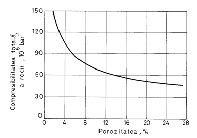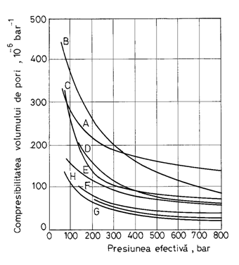Influenta porozitatii asupra compresibilitatii spatiului poros, pentru toate categoriile de roci, este data n figura 8.3.