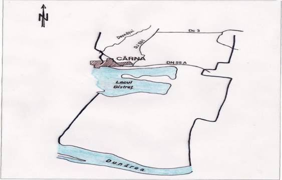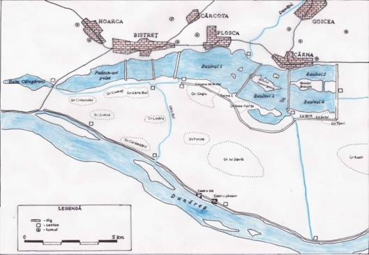Fig 3. Complexul lacunar Bistret-Cârna(aspectul actual dupa amenajerile din anii 1968-1971)