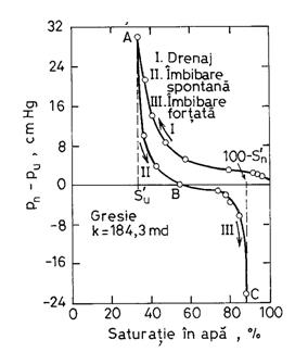 iar saturatia īn faza neumezitoare de la Sn = 0 la Sn = 1 - S'u, cānd diferenta ca-pilara de presiune creste de la pn - pu = 0 la o valoare foarte mare.