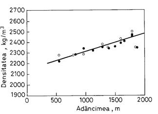 Fig. 9.2. Cresterea densitatii unei marne cu adāncimea.