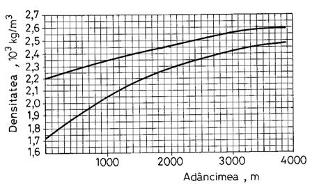 Fig. 9.1. Limitele de variație a densitații rocilor cu ad ncimea.