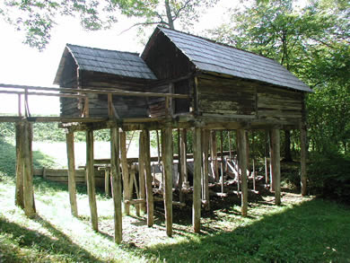 Instalatia morii hidraulice si angrenaje de transmisie a fost recuperata în anul 1982, de la un monument defalcat, din comuna Rau de Mori, judetul Hunedoara.
