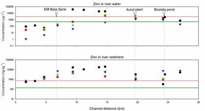 Râul Săsar: concentrația de zinc în apa de suprafață și în sedimentele de râu /11/