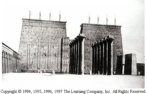 Zidul din fata avea 2 turnuri masive impreuna numite piloni cu o