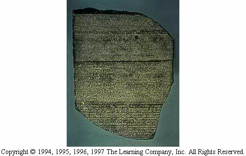 Cand Napoleon s-a dus in Egipt nin 1799 el a luat multi experti in literatura si stiinta. Langa orasul Rashoid, unul dintre ofiterii sau a descoperit o piata pe care reau trei tipuri de scrieri. Scrierea din partea de jos a fost recunoscuta apartinand grecilor, cea din mijloc era demotica iar cea de sus era heroglifica. Screrea greaca a fost tradusa si au presupus ca celelalte doua sectiunii contin acelasi mesaj.