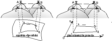 Figura - Proiectia geodezica si proiectia topografica a punctelor |