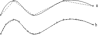 Detaliile topografice sunt n general alcatuite din linii sinuoase a caror determinare si exprimare matematica ar fi practic imposibila si apoi chiar si inutila. Aceeasi linie sinuoasa se poate transforma ntr-o linie fr nta care sa mbrace si sa nlocuiasca cu suficienta fidelitate conturul initial. n fugura 1.6 sunt prezentate doua moduri de a geometriza un contur sinuos : n cazul "a", datorita faptului ca s-au ales putine puncte pe contur, geometrizarea este incorecta, n timp ce n cazul "b", datorita numarului adecvat de puncte alese, linia fr nta care aproximeaza conturul sinuos este mult mai aproape ca forma de acest contur. Operatiunea poarta denumirea de geometrizarea terenului si se poate face at t n plan orizontal, c nd un punct se determina prin coordonate x si y, c t si n plan vertical, situatie n care determinarea se face prin cota si distanta fata de un reper ales.