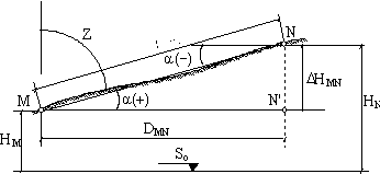 a este unghiul format de orizontala ce trece printr-un punct si directia catre cel de-al doilea punct. Unghiurile de panta, la fel ca si diferenta de nivel, pot fi pozitive sau negative. Pozitive sunt unghiurile de panta catre toate punctele situate deasupra liniei orizontului, dupa cum unghiurile de panta sunt negative pentru toate punctele situate sub liniei orizontului. Daca directia de referinta nu este orizontala ce trece printr-un punct ci verticala locului, atunci unghiul format de verticala cu directia MN se numeste unghi zenital, notat cu "z". ntre unghiul zenital si unghiul de panta al unei directii date exista totdeauna relatia: