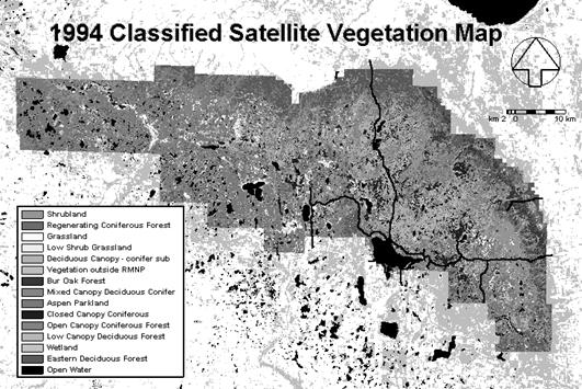 Fig. 2. Harta a vegetatiei dintr-un parc national din SUA, īntocmita pe baza imaginilor satelitare prin clasificarea pixelilor.