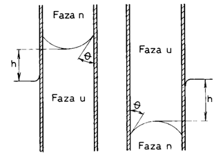 Fig. 11.7. Ascensiunea si depresiunea capilara.