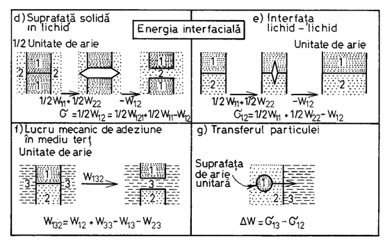 Fig. 12.1. Lucrul mecanic de adeziune si coeziune, energia de suprafata.