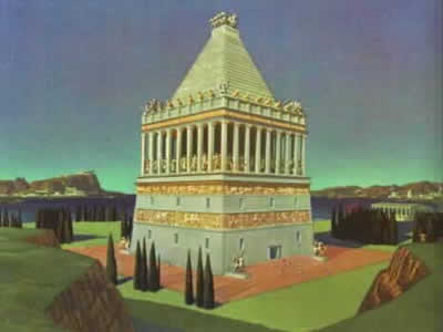 MAUSOLEUL DIN HALICARNAS a fost opera opera arhitectilor Pytheos si Satyos si a sculptoruluui Scopas. Construirea lui a fost incheiata, in anul 335 i.e.n., de Artemisa, sotia regelui Cariei, Mausol; din porunca acestuia, monumentul a fost inaltat pentru a-i sluji ca mormant-templu.
