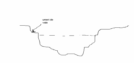 Umeri de vale - se pastreaza pe flancurile vailor din aria flisului, deasupra teraselor suprafetei, fiind practic vorba de o prima faza de evolutie a retelei hidrografice.
