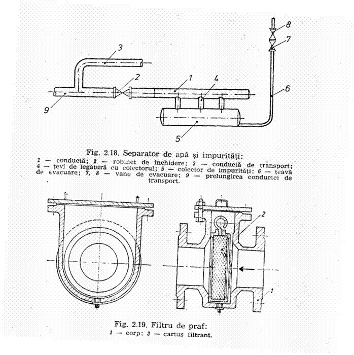 consumatori antreneaza o gama întreaga de impuritati care necesita masuri speciale pentru înlaturarea lor. Astfel, pe traseul conductelor de transport sunt vehiculate de catre curentul de gaze particule straine, cum sunt: . în prima perioada de exploatare, elementele din noroiul de foraj; . particule din roca magazin neconsolidata; . vapori de apa; o pietre si pamânt care provin de la montaj; . praf si rugina de pe peretii conductei.