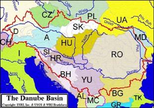 Dunarea - al doilea curs de apa din Europa, dupa Volga, bazinul hidrografic, în lungime totala de 2850 km (38% în România) traverseaza tari