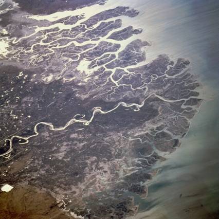 Gura de varsare a unor fluvii la tarmul unor mari sau oceane cu maree. Estuarul are aspectul unei pungi sau a unui golf prin care in timpul fluxului apa preia toate materialele rezultate din eroziune si le