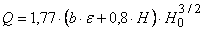 Yv - inaltimea pragului deversorului deasupra punctului in care linia paramentului aval al barajului se intersecteaza cu linia paramentului aval al barajului, care se stabileste cu relatia: