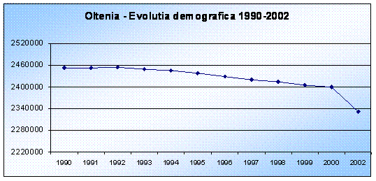 Pe durata intregii perioade 1992-2003 cele mai accentuate scaderi ale populatiei s-au inregistrat in judetele Mehedinti cu 25385 persoane, reprezentand 7,63% din populatia judetului in anul 1992, respectiv Olt cu 31932 persoane, reprezentând 6,10%,. Scaderea populatiei in celelalte judete ale regiunii, pe perioada mentionata, a fost de 4,83% in Dolj (36800 persoane), 4,54% in Valcea (19925 persoane) si 3,52% in Gorj (14131 persoane)