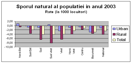 mediul rural, regiunea se situeaza pe ultimul loc in ceea ce priveste sporul