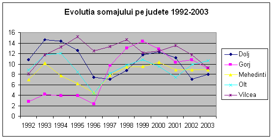 Tab 7.11. Evolutia somajului in Oltenia intre 1992 - 2003: