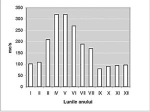 Analizati diagrama in coloane care prezinta evolutia debitelor medii lunare ale