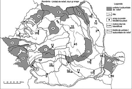 - 3. numele raurilor marcate, pe harta, cu