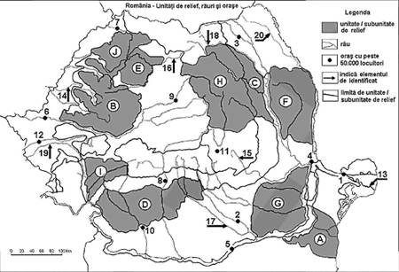 marcate cu C si relieful unitatii marcate cu J;