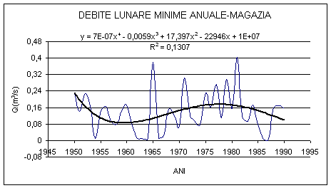 La fel ca si la debitele medii multianuale, si la debitele minime se constata o ciclicitate pe perioade de 4-5 ani.