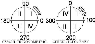 Pentru a cunoaste directiile cardinale ale hartilor si planurilor, acestea trebuie sa fie orientate. Acest lucru nseamna ca directii identificate pe o harta sau plan sa fie facute paralele cu omoloagele lor din teren prin rotirea n mod convenabil a hartii sau planului. Directia care se foloseste n orientarea lucrarilor de masuratori terestre, numita directie de referinta, este directia nordului geografic. Deoarece determinarile se fac n sens orar, pentru a se pastra relatiile cunoscute din trigonometrie, s-a adoptat cercul topografic, la care numerotarea cadranelor se face n sens orar, pornind de la directia nordului.