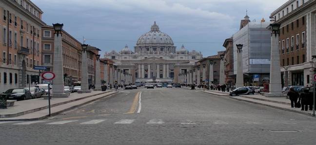 Mussolini a demolat casele medievale si a construit un bulevard spre Piata Sfântul Petru.