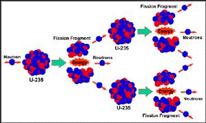 Īn 1939 s-a ajuns la concluzia , ca la bombardarea cu neutroni lenti, nucleul de uraniu se rupe īn doua fragmente, aproximativ egale, eliberāndu-se īn acest proces caldura si neutroni.