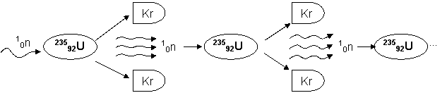 declansata de un neutron, care la rāndul ei elibereaza 1÷3