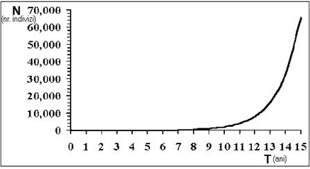 Fig. 45. Cresterea exponentiala a unei populatii.