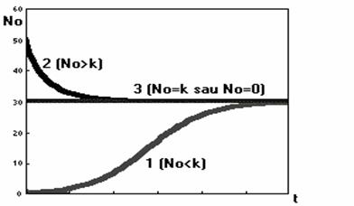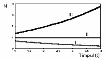 Exista trei posibile reprezentari grafice ale reprezentarii functiei care descrie cresterea populatiei (figura 46), pentru trei cazuri posibile.