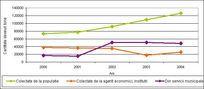 Tabel 7.1.1.1 Evolutia cantitatilor de deseuri generate în perioada 2000 - 2004