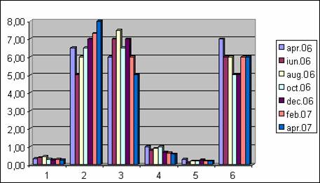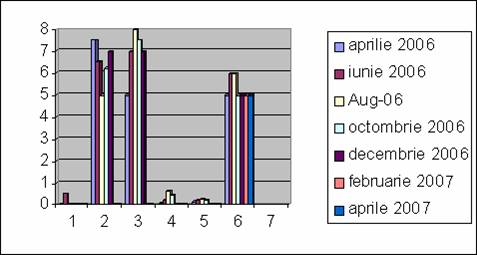 3) &nbs 515g63f p; Calitatea apei a fost monitorizata in date diferite, pe o perioada mai indelungata: din primavara anului 2006, pana la sfarsitul lunii aprilie 2007. Pentru aceasta am colectat apa din Cris si am facut analize in ceea ce priveste calitatea acesteia cu ajutorul cuferului Winlab in laboratorul de biologie si de chimie.