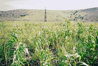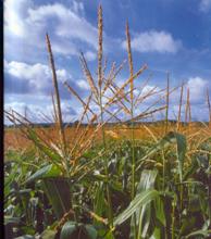 Fig. 4. Aspectul unor culturi de porumb din Uniunea Europeana (a) si din Romania (b), limita maxima de aflatoxine si nivelul unor parametrii climatici esentiali (temp maxima la inflorit care favorizeaza si precipitatiile care reduc) pentru contaminarea cu aflatoxine in UE, Romania si centura porumbului din SUA (c).