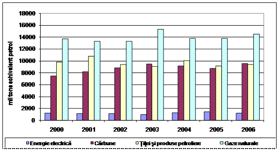 Datele evidentiaza o crestere a totalului consumului intern brut de energie in perioada 2000 - 2006.