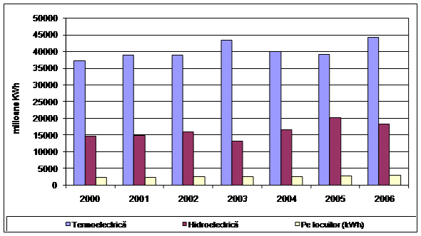 Productia de energie electrica in perioada 2000 – 2006 este prezentata in tabelul nr. 3.1. si in figura nr. 3.1.