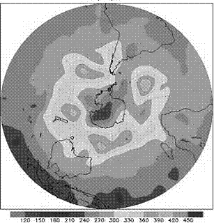 Figura 57 . Concentratia ozonului deasupra Antarcticii, valori medii pentru luna Octombrie la statia Halley.