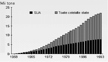 Dupa ce s-a dovedit in mod stiintific impactul CFC asupra concentratiei ozonului stratosferic, SUA care erau in mod traditional cel mai mare producator pe plan mondial de astfel de substante (Fig 54), au inceput sa reduca din ce in ce mai mult productia proprie de CFC precum si utilizarea acestor compusi chimici.