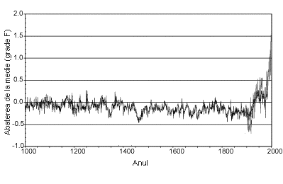 Figura 61. Variatia temperaturii in emisfera nordica in ultimul mileniu. Sursa: Agentia Americana pentru Protectia Mediului.