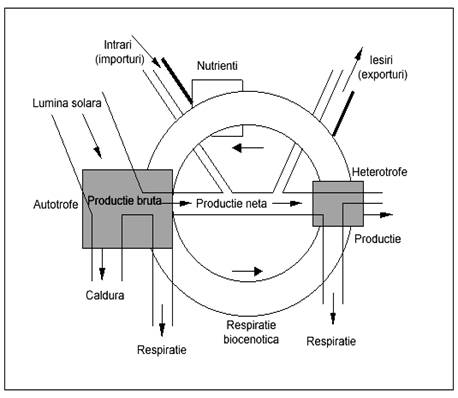 Modul în care se manifesta fluxul de energie (figura 25) în ecosisteme este diferit în functie de tipul ecosistemului si de diferitele caracteristici de natura structurala si functionala ale biocenozei si biotopului acestuia.