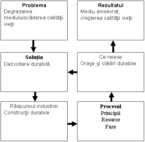 In figurile 2 si 3 se prezinta ciclul ce trebuie parcurs de un proiect de constructii pentru asigurarea unei dezvoltari durabile si fazele prin care urmeaza sa treaca proiectul, in situatia unor principii si resurse date.