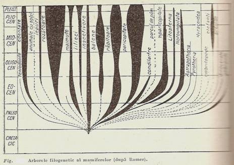 Arborele filogenetic care poate sa reprezinte concret dezvoltarea filetica a animalelor are totusi o coroana cu doua ramuri, deoarece clasa pasarilor s-a desprins aproximativ tot atat de timpuriu din reptilele disparute ca si mamiferele. Aceasta ramificare a avut loc acum circa 160-170 de milioane de ani, in perioada triasica din mezozoic. Evolutia pasarilor are aceeasi vechime cu a mamiferelor. La fel cu acestea din urma, pasarile si-au perfectionat evolutiv caracterele pe care le posedau la desprinderea din trunchiul reptilelor. Nu se poate spune ca in comparatie cu pasarile, facultatile locomotorii ale mamiferelor sunt inferioare, deoarece ele merg, alearga, sar, se catara, zboara, inoata si se scufunda in apa cu pasarile. Dar ele sunt mai legate de pamant, astfel