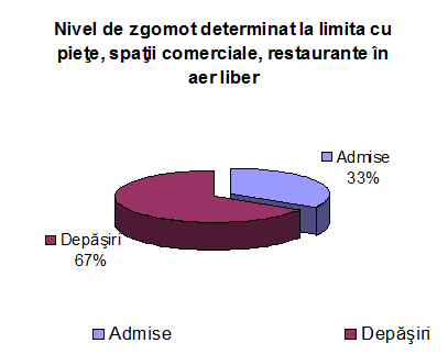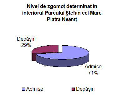 Nivelul de zgomot - 515f57f s- 515f57f a expertizat in puncte reprezentative si s- 515f57f a determinat in perioada diurna, in orele cu maxim de trafic si de activitati economice. Masuratorile s- 515f57f au efectuat pe strazi de diferite categorii, la bordura trotuarului ce margineste carosabilul, in 19 dintre intersectiile principalelor artere rutiere din cele 4 orase din judet (Piatra Neamt, Bicaz, Roman si Targu Neamt) si la limita exterioara a zonelor functionale reprezentate de: stadion, piete, parcuri si incinte de scoli.