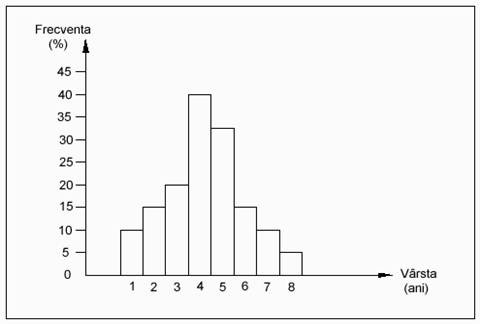 Fig. 27. Exemplu de histograma a frecventelor claselor de vârsta ale unei populatii.