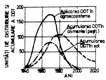 Cumularea substantelor nocive prin poluare, mai ales a celor persistente de tipul DDT-ului, arata cât de dificil este sa fie eliminate din agroecosistem, chiar si la multi ani dupa ce nu se mai folosesc. Calculele (conform unui program al Institutului de Tehnologie Massachusetts, SUA) demonstreaza ca si în prezent în biosfera se afla atât de multa substanta activa, încât ea va continua sa persiste în agroecosisteme, ori în ecosistemele naturale, si dupa anul 2020 (fig. 23).